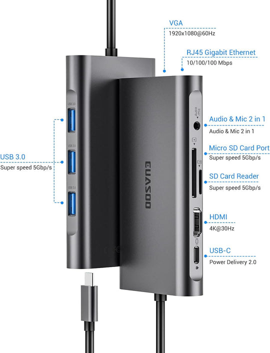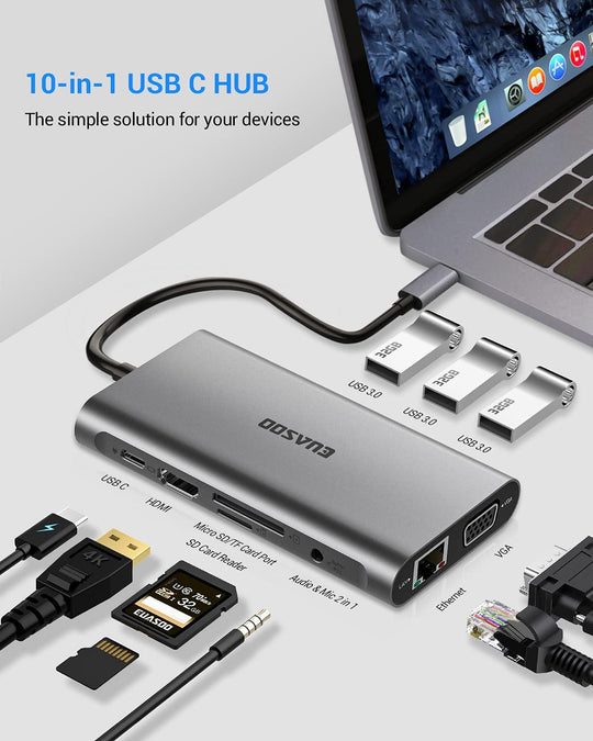 No reviewsThe EUASOO 10 in 1 USB C Adapter with 1000M RJ45 Ethernet provides 10 essential ports for USB C devices. It includes HDMI, 2 USB 3.0 ports, USB-C power delivery, 1000M RJ45 Ethernet, SD/TF card reader,...Regular price $74.99Regular price $74.99 -