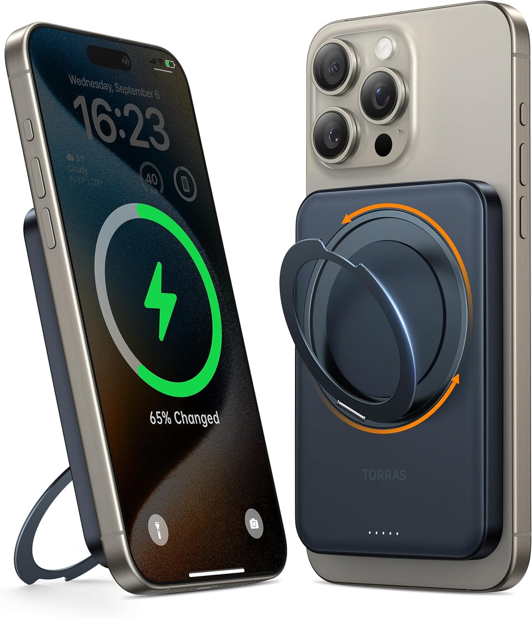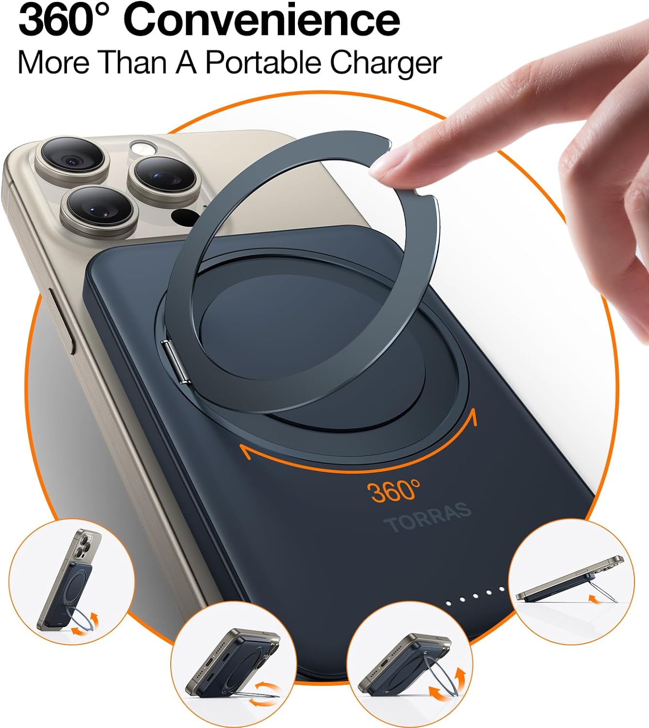 This powerful 5000 mAh wireless portable charger has 15W USB-C magnetic Ostand power bank to charge your iPhone 15/15 Plus/15 Pro/15 Pro Max, iPhone 14/13/12 quickly and efficiently. It also features a battery pack with a 360° rotatable stand for convenience. Keep your device powered up with this reliable charger.